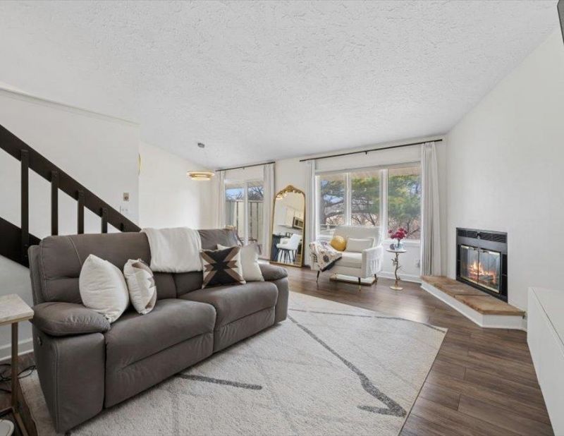 Experience the pinnacle of meticulous care in this stunning, townhouse-style condo. From the moment you cross the threshold, step inside, and you're immediately welcomed into a bright, freshly painted living room with soaring volume ceilings that create an impressive sense of space. A warm, crackling fireplace anchors the room, setting the perfect tone for relaxing evenings or cozy gatherings. Luxury vinyl plank flooring carries seamlessly throughout the main level, adding both durability and modern style. The living room flows effortlessly into the dining area, where patio doors lead to a private backyard deck retreat. Surrounded by a peaceful setting with a feeling of endless privacy, it's the ideal space for morning coffee or summer entertaining. Just beyond, the beautifully updated kitchen is designed to impress. Granite countertops, and a stainless steel appliance package combine function and elegance, making meal prep both easy and enjoyable. Upstairs, a charming loft-style walkway overlooks the great room below, enhancing the open, airy feel of the home. Two spacious bedrooms feature newer, whisper-soft carpeting for added comfort. The primary suite is your personal sanctuary, boasting a walk-in closet and a private "Coffee Deck" newly replaced in Fall 2025, offering a quiet place to unwind. The fully updated bathroom showcases tile flooring, a modern vanity, a beautifully tiled shower, and a sliding barn-door entry for a contemporary touch. The lower level offers even more living space, with partial exposure that fills the rec room with natural light. Luxury vinyl plank flooring continues here, and the basement laundry area includes a working toilet (currently noted as a .25 bath) with excellent potential to expand into a second full bathroom. Additional highlights include updated fixtures and lighting, crisp white six-panel doors and trim, a Nest thermostat, an attached two-car garage. All within walking distance to the park and tucked into a serene circular neighborhood setting. Every inch of this home feels brand new. Tucked into a quiet circular neighborhood, you're just a short stroll from the park, yet miles away from the hustle and bustle. Move-in ready, meticulously maintained, and thoughtfully updated. This is a home you'll be proud to call your own.